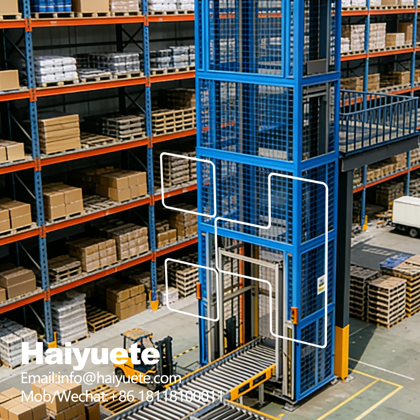 整机钢结构稳固,载货台防滑设计 + 对位卡位,正常规范载货无偏移;严禁超高、超宽、超重、偏心摆放货物。